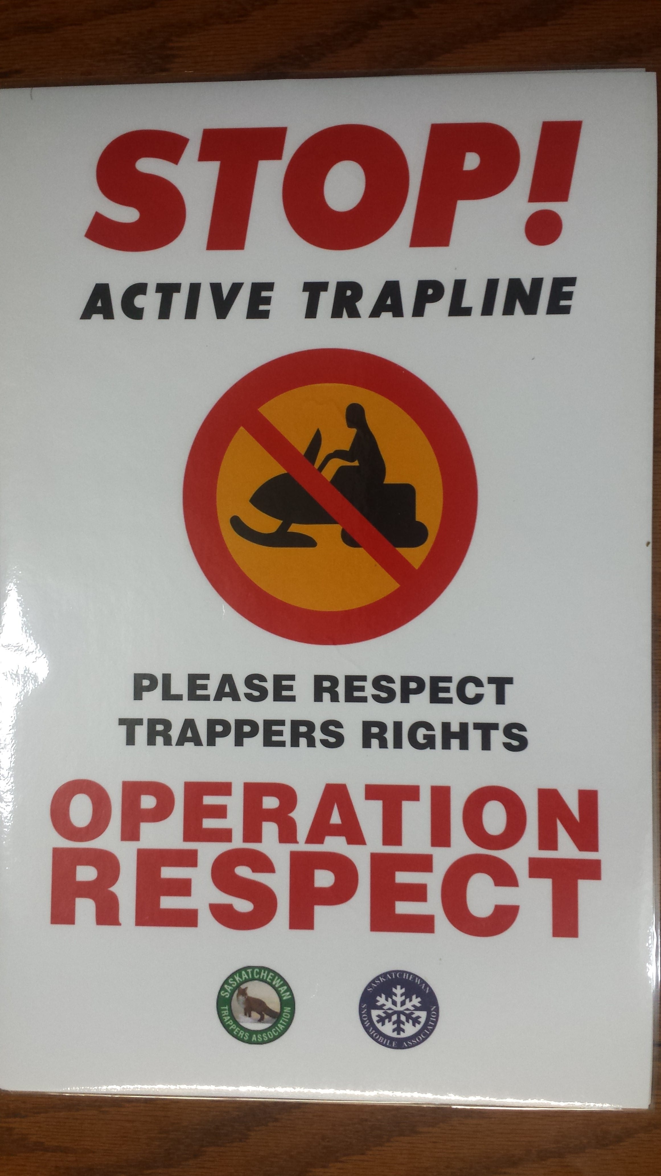 Director of Zone 9 Bill Zak has initiated a cooperative agreement with the STA and the Saskatchewan Snowmobile Association where signs have been made to warn snowmobilers to respect active traplines. Signs and instructions are available from Bill at 306 865 3625 or email at [email protected] Click on the link below to view.
